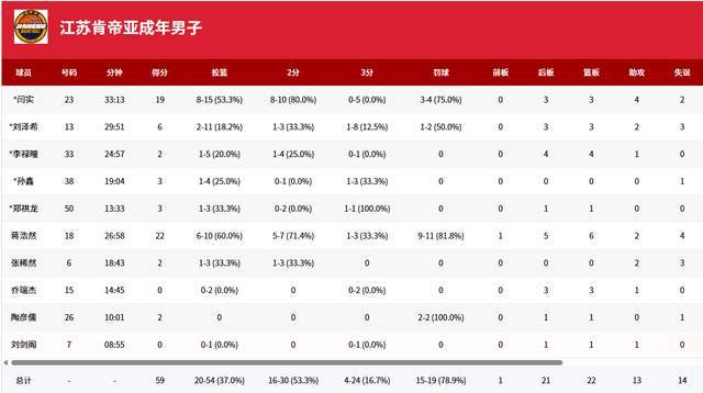 江苏队尽管顶了半场,可惜实力不济,还是输给了浙江队。全队仅2人得分上双,蒋浩然空砍22分6篮板2助攻,闫实19分3篮板4助攻。